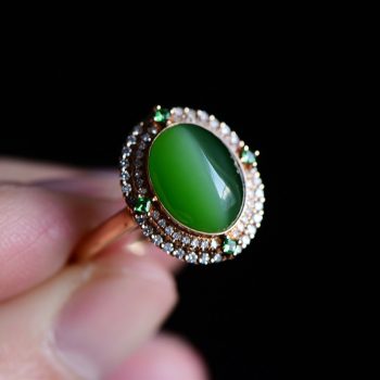 - 猫眼碧玉玫瑰金镶嵌碎钻
